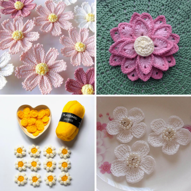 Hoje eu trouxe 4 modelos de flores de crochê para você se inspirar e decorar aquela peça usada que estava jogada no guarda roupas, ou até mesmo, criar do zero fantásticas peça de crochê decoradas com lindas flores!