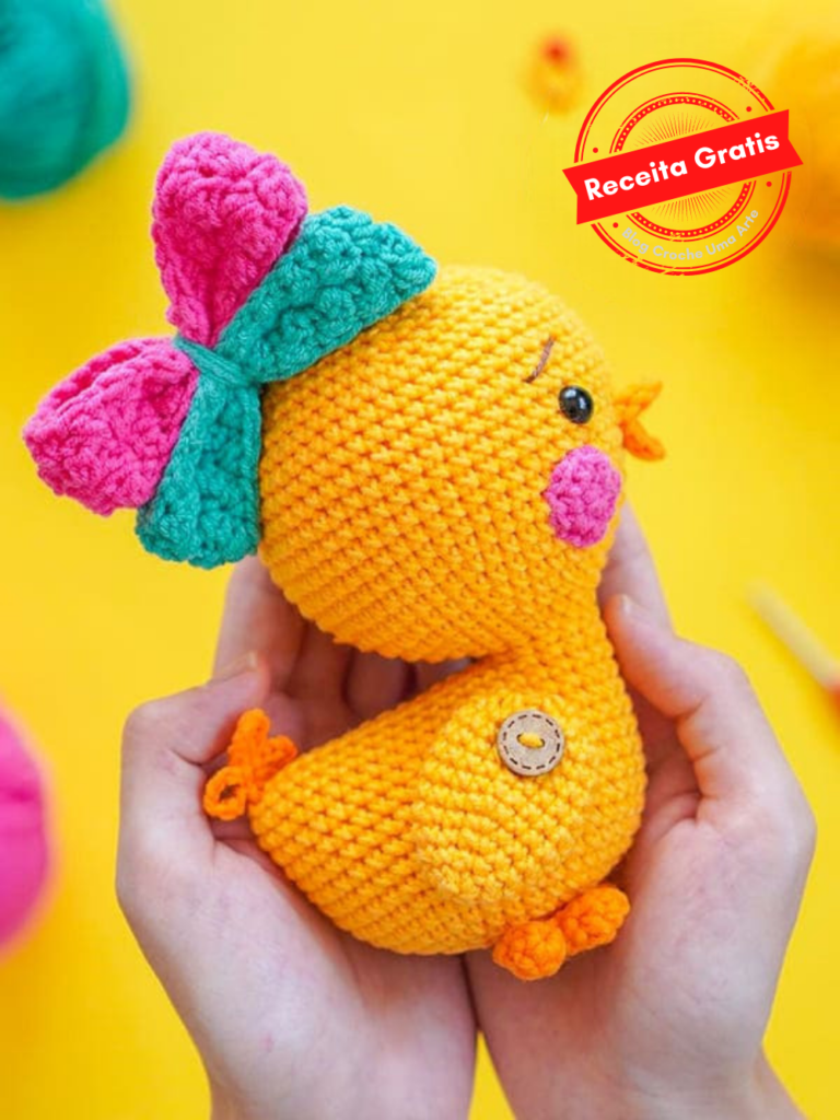 • O tamanho do pato de crochê acabado é de cerca de 15 cm.