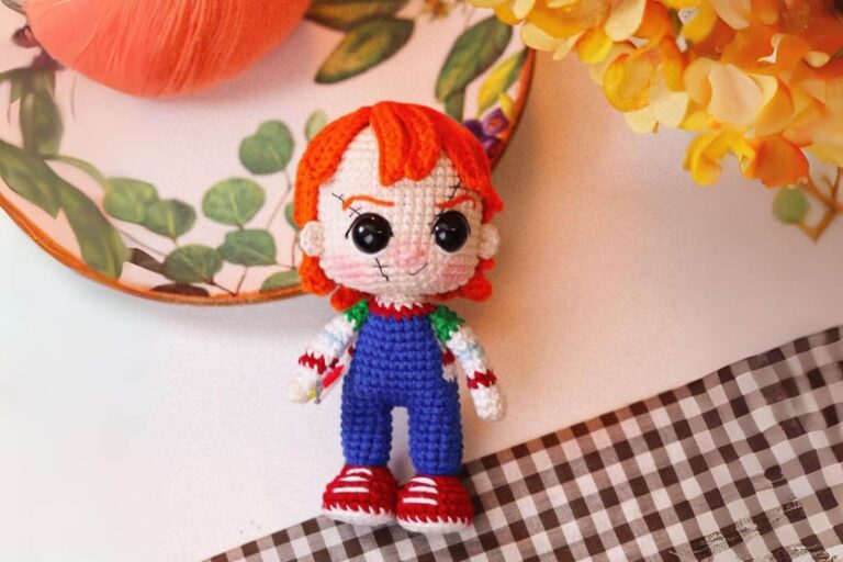 Boneco Chucky Amigurumi. Prepare-se para entrar no mundo sombrio e fascinante de Chucky com este tutorial de amigurumi. Inspirado no famoso boneco assassino dos filmes de terror, este projeto combina o charme do crochê com o suspense do cinema para criar uma peça única e arrepiante. Vamos começar a transformar fios e agulhas em nosso próprio Boneco Chucky!