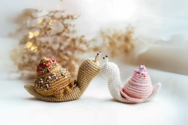 - Formação da Espiral: Para a concha, trabalhe em espiral com pontos baixos, aumentando o número de pontos para criar um formato circular. Depois, enrole e costure no corpo, formando a clássica espiral do caracol.