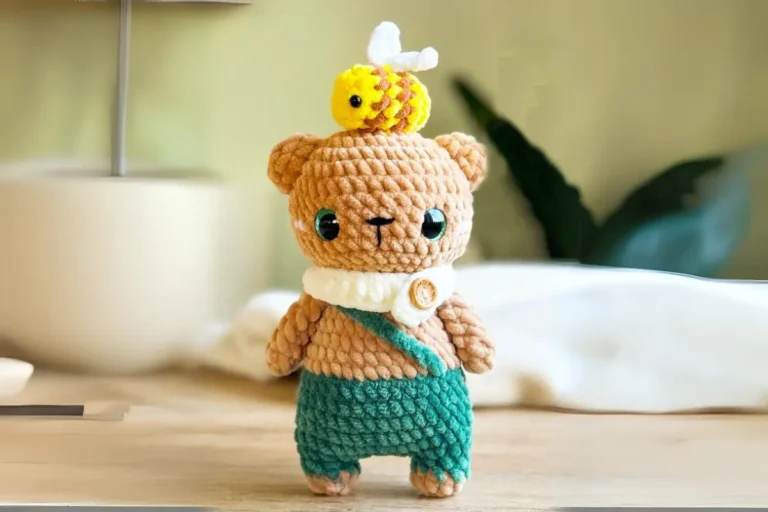 - Asinhas de Abelha: Para um toque final, que tal adicionar pequenas asas nas costas do ursinho? Elas podem ser feitas em crochê ou com feltro branco, complementando o tema de abelhinha!