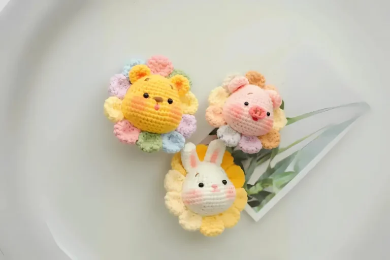 - Acessórios: Adicione roupas, chapéus, ou até mesmo mini flores de crochê para o Urso Girassol. O Porquinho pode ganhar um lenço no pescoço, e o Coelhinho pode segurar uma cenoura de crochê! 🧣🥕